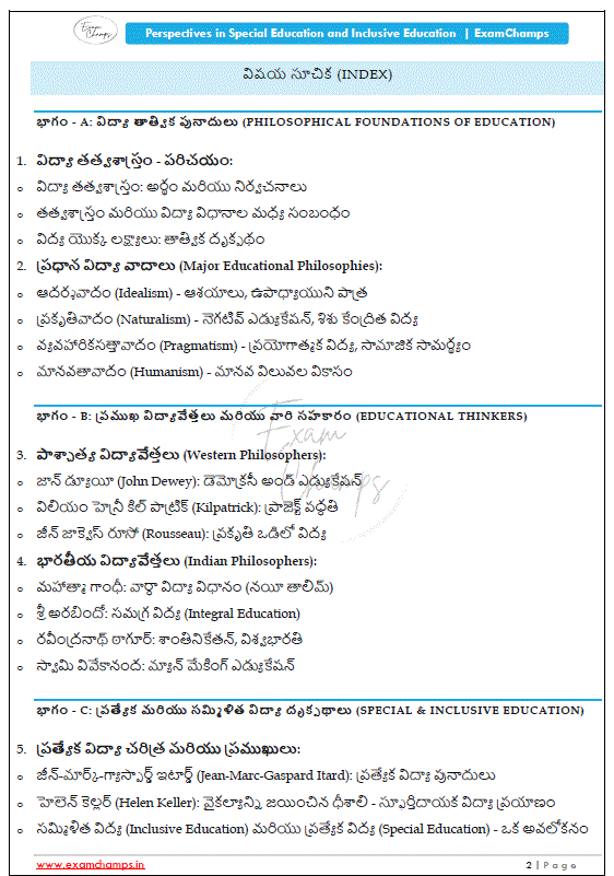 Syllabus Coverage: Perspectives in Special Education (5 Marks) సిలబస్ను సంపూర్ణంగా కవర్ చేస్తుంది.