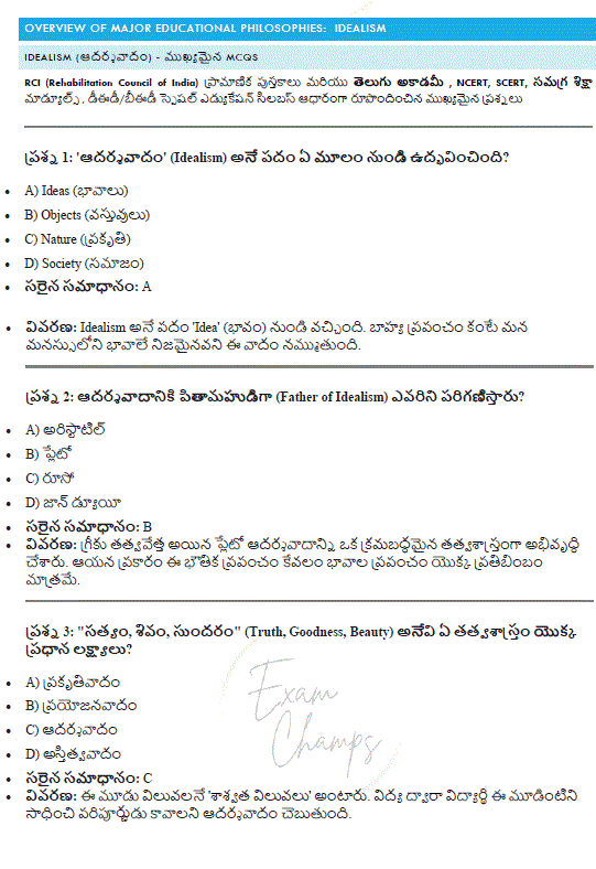 This practice guide is designed to provide deep conceptual clarity on the Philosophical Foundations of Education, specifically tailored for Special Education exams.